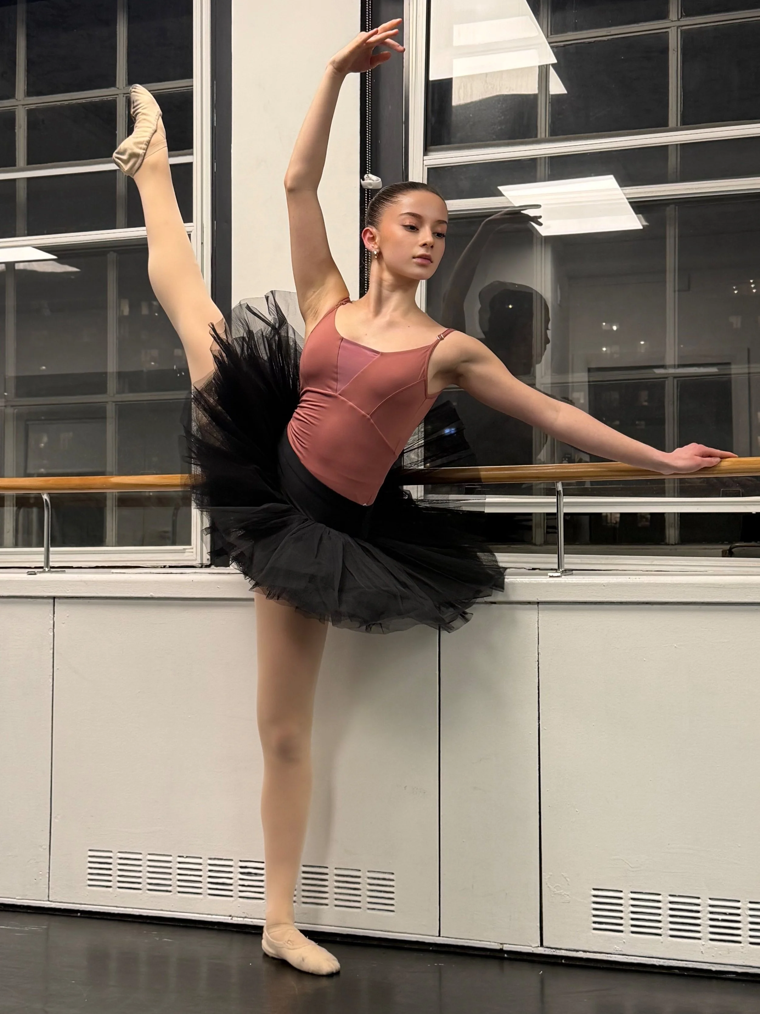 Photo description: at the Opéra de Paris School is this photo - Marguerite Louise Galopin trained at BdA with Carole Alexis. She entered the school/conservatory at the Pre-Ballet II level at 14 and attended the Opera de Paris Summer Intensive 2 years later. Marguerite Louise Galopin graduated with honors at the Professional Level/ Trainee.